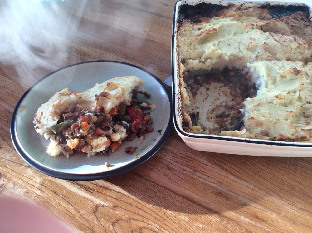 So today’s dinners consists of frying lamb mince, adding red pepper, onion, garlic and aubergine and some green beans. Then add a spoonful of chutney, some gravy, coriander and some black eyed beans. A splash of Worcester sauce and lots of creamy mash on top. Bake till golden. Perfect for a lazy Sunday afternoon.