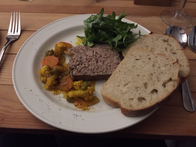 Haslet (coarse English pate) with piccalilli and sour dough